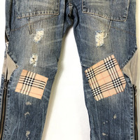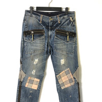 PPFM Multi Zipper Distressed Patchwork Denim Tag: PPFM size fits w31-32 manual measurement waist :- 17 inches Lenght (outseam ) :- 39 inches (Inseam) :- 30 inches Thigh :- 10 inches Front rise:- 10 inches Leg opening:- 6.5 inches condition: nice distressed with custom patchwork condition (please refer photo) Colour :- faded blue Additional: ●All Measurements were been measured flat on the floor. ●Please don't expect this item condition is 100% like new unless we have mention it. ●Please do not hesitate to contact us if you have any inquiries.Its our great pleasure to have conversation with customers. ●no return & refund if its do not meet your demand, please look carefully on details given. SHIPPING & HANDLING INFORMATION : # we shipped worldwide except ISRAEL. It's safe and you will be given tracking number for all item # we shipped items within 48 hours after receiving a cleared payment on Pay Pal (except for public holidays and weekends) and please do make sure your address is correct. # Please leave us your contact phone number, as the shipping company always need the phone number to help delivering. # we do offer combine shipping to save on postage cost. Do please contact us for combine postage after final purchases for combine shipping. Shipping cost: 1) DHL EXPRESS : $36 (ETA 3-5 DAYS TO ARRIVE) (PLEASE REQUEST IF THE ITEM NEEDED TO BE EXPEDITED - ADDITIONAL COST REQUIRED;, UNLESS, WE USED REGISTERED MAIL SERVICE ) 2) REGISTERED MAIL INTERNATIONAL SERVICE : $18 (ETA 14-21 DAYS TO ARRIVE) Thank you very much for your visit