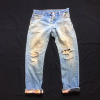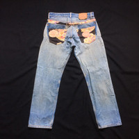 Vintage Levis 501 Custom Patchwork Japan Motif Reconstruct Distressed Denim Rebuild Jeans Tag: Levis 501 made in usa size stated w35 L33 manual measurement waist :- 17 inches Lenght (outseam ) :- 40 inches (Inseam) :- 30 inches Thigh :- 12 inches Front rise:- 12 inches Leg opening:- 8 inches condition: nice distressed rebuild design condition (please refer photo) Colour :- light blue Additional: ●All Measurements were been measured flat on the floor. ●Please don't expect this item condition is 100% like new unless we have mention it. ●Please do not hesitate to contact us if you have any inquiries.Its our great pleasure to have conversation with customers. ●no return & refund if its do not meet your demand, please look carefully on details given. SHIPPING & HANDLING INFORMATION : # we shipped worldwide except ISRAEL. It's safe and you will be given tracking number for all item # we shipped items within 48 hours after receiving a cleared payment on Pay Pal (except for public holidays and weekends) and please do make sure your address is correct. # Please leave us your contact phone number, as the shipping company always need the phone number to help delivering. # we do offer combine shipping to save on postage cost. Do please contact us for combine postage after final purchases for combine shipping. Shipping cost: 1) DHL EXPRESS : $36 (ETA 3-5 DAYS TO ARRIVE) (PLEASE REQUEST IF THE ITEM NEEDED TO BE EXPEDITED - ADDITIONAL COST REQUIRED;, UNLESS, WE USED REGISTERED MAIL SERVICE ) 2) REGISTERED MAIL INTERNATIONAL SERVICE : $18 (ETA 14-21 DAYS TO ARRIVE) Thank you very much for your visit