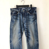 Rare Eternal Japan Vintage Style Jeans Japanese Designer Tag: eternal made in japan size stated 34 manual measurement waist :- 17.5 inches Lenght (outseam ) :- 41 inches (Inseam) :- 34 inches Thigh :- 11.5 inches Front rise:- 10.5 inches Leg opening:- 9 inches condition: nice faded vintage condition (please refer photo) Additional: ●All Measurements were been measured flat on the floor. ●Please don't expect this item condition is 100% like new unless we have mention it. ●Please do not hesitate to contact us if you have any inquiries.Its our great pleasure to have conversation with customers. ●no return & refund if its do not meet your demand, please look carefully on details given. SHIPPING & HANDLING INFORMATION : # we shipped worldwide except ISRAEL. It's safe and you will be given tracking number for all item # we shipped items within 48 hours after receiving a cleared payment on Pay Pal (except for public holidays and weekends) and please do make sure your address is correct. # Please leave us your contact phone number, as the shipping company always need the phone number to help delivering. # we do offer combine shipping to save on postage cost. Do please contact us for combine postage after final purchases for combine shipping. Shipping cost: 1) DHL EXPRESS : $36 (ETA 3-5 DAYS TO ARRIVE) (PLEASE REQUEST IF THE ITEM NEEDED TO BE EXPEDITED - ADDITIONAL COST REQUIRED;, UNLESS, WE USED REGISTERED MAIL SERVICE ) 2) REGISTERED MAIL INTERNATIONAL SERVICE : $20 (ETA 14-21 DAYS TO ARRIVE) Thank you very much for your visit