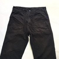 Goodenough Cotton Fatigue Buckle Back Pant Tag: Goodenough Made in japan size state medium fit to 30 manual measurement waist :- 15 inches Lenght (outseam ) :- 39 inches (Inseam ) :- 29 inches Thigh :- 12 inches Front rise:- 12 inches Leg opening:- 8 inches condition: used condition 8/10, got 1 tiny slight bleach spot (please refer photo) Main colour: black ( faded naturally) Additional: ●All Measurements were been measured flat on the floor. ●Please don't expect this item condition is 100% like new unless we have mention it. ●Please do not hesitate to contact us if you have any inquiries.Its our great pleasure to have conversation with customers. ●no return & refund if its do not meet your demand, please look carefully on details given. SHIPPING & HANDLING INFORMATION : # we shipped worldwide except ISRAEL. It's safe and you will be given tracking number for all item # we shipped items within 48 hours after receiving a cleared payment on Pay Pal (except for public holidays and weekends) and please do make sure your address is correct. # Please leave us your contact phone number, as the shipping company always need the phone number to help delivering. # we do offer combine shipping to save on postage cost. Do please contact us for combine postage after final purchases for combine shipping. Shipping cost: 1) DHL EXPRESS : $36 (ETA 3-5 DAYS TO ARRIVE) (PLEASE REQUEST IF THE ITEM NEEDED TO BE EXPEDITED - ADDITIONAL COST REQUIRED;, UNLESS, WE USED REGISTERED MAIL SERVICE ) 2) REGISTERED MAIL INTERNATIONAL SERVICE : $20 (ETA 14-21 DAYS TO ARRIVE) Thank you very much for your visit