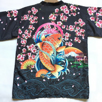 Rare! Japanese Koi Fish Kimono Cardigan Style Lightweight Nylon Tag: Anhelon Size stated free measurements were armpit 22 inches, top of back collar to bottom 30 inches Shoulder width 23 inches Sleeves length 9.5 inches main colour: black condition: good condition , no hole , ripped or stain , (please refer zoom photo) Additional: ●All Measurements were been measured flat on the floor. ●Please don't expect this item condition is 100% like new unless we have mention it. ●Please do not hesitate to contact us if you have any inquiries.Its our great pleasure to have conversation with customers. ●no return & refund if its do not meet your demand, please look carefully on details given. SHIPPING & HANDLING INFORMATION : # we shipped worldwide except ISRAEL. It's safe and you will be given tracking number for all item # we shipped items within 48 hours after receiving a cleared payment on Pay Pal (except for public holidays and weekends) and please do make sure your address is correct. # Please leave us your contact phone number, as the shipping company always need the phone number to help delivering. # we do offer combine shipping to save on postage cost. Do please contact us for combine postage after final purchases for combine shipping. Shipping cost: 1) DHL EXPRESS : $36 (ETA 3-5 DAYS TO ARRIVE) (PLEASE REQUEST IF THE ITEM NEEDED TO BE EXPEDITED - ADDITIONAL COST REQUIRED;, UNLESS, WE USED REGISTERED MAIL SERVICE ) 2) REGISTERED MAIL INTERNATIONAL SERVICE : $20 (ETA 14-21 DAYS TO ARRIVE) Thank you very much for your visit