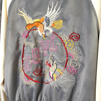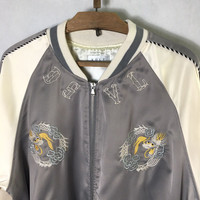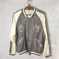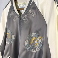 Sukajan Souvenir Satin Embroidery Dragon Jacket Tag: Japanese Brand Size fits large measurements were armpit 24 inches, top of back collar to bottom 27 inches Collar to end of sleeves 30 main colour: grey / pearl white condition: good condition , no hole , ripped or heavy stain , (please refer zoom photo) Additional: ●All Measurements were been measured flat on the floor. ●Please don't expect this item condition is 100% like new unless we have mention it. ●Please do not hesitate to contact us if you have any inquiries.Its our great pleasure to have conversation with customers. ●no return & refund if its do not meet your demand, please look carefully on details given. SHIPPING & HANDLING INFORMATION : # we shipped worldwide except ISRAEL. It's safe and you will be given tracking number for all item # we shipped items within 48 hours after receiving a cleared payment on Pay Pal (except for public holidays and weekends) and please do make sure your address is correct. # Please leave us your contact phone number, as the shipping company always need the phone number to help delivering. # we do offer combine shipping to save on postage cost. Do please contact us for combine postage after final purchases for combine shipping. Shipping cost: 1) DHL EXPRESS : $36 (ETA 3-5 DAYS TO ARRIVE) (PLEASE REQUEST IF THE ITEM NEEDED TO BE EXPEDITED - ADDITIONAL COST REQUIRED;, UNLESS, WE USED REGISTERED MAIL SERVICE ) 2) REGISTERED MAIL INTERNATIONAL SERVICE : $20 (ETA 14-21 DAYS TO ARRIVE) Thank you very much for your visit