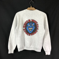 Mega Rare! Vintage 80s Santa Cruz Speed Wheels Jim Philips Skateboard Sweatshirt Tag: Jerzees 50/50 size state M may fits small-medium Manual measurements: armpit 20 inches, collar to bottom 24 inches, sleeve length from collar were 29 inches. condition: good condition 9/10, few light yellowish infront, please zoom extra photo given main colour: heather white Additional: ●All Measurements were been measured flat on the floor. ●Please don't expect this item condition is 100% like new unless we have mention it. ●Please do not hesitate to contact us if you have any inquiries.Its our great pleasure to have conversation with customers. ●no return & refund if its do not meet your demand, please look carefully on details given. SHIPPING & HANDLING INFORMATION : # we shipped worldwide except ISRAEL. It's safe and you will be given tracking number for all item # we shipped items within 48 hours after receiving a cleared payment on Pay Pal (except for public holidays and weekends) and please do make sure your address is correct. # Please leave us your contact phone number, as the shipping company always need the phone number to help delivering. # we do offer combine shipping to save on postage cost. Do please contact us for combine postage after final purchases for combine shipping. Shipping cost: 1) DHL EXPRESS : $30 (ETA 3-5 DAYS TO ARRIVE) (PLEASE REQUEST IF THE ITEM NEEDED TO BE EXPEDITED - ADDITIONAL COST REQUIRED;, UNLESS, WE USED REGISTERED MAIL SERVICE ) 2) REGISTERED MAIL INTERNATIONAL SERVICE : $15 (ETA 14-21 DAYS TO ARRIVE) Thank you very much for your visit
