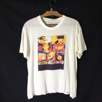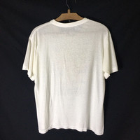 Rare! Vintage 90s Sega Saturn Last Bronx Fighter Game Microsoft Windows Soft Thin Tshirt Tag: faded Japan Size fits M-L measurements: armpit 21.5 inches, top of back collar to bottom 26.5 inches Shoulder width 20 inches condition: good used condition 8/10, (please zoom extra photo given) main colour: old white (slight yellowish naturally) Additional: ●All Measurements were been measured flat on the floor. ●Please don't expect this item condition is 100% like new unless we have mention it. ● Please pay close attention to measurements provided. ● Do not rely on tag size as pre-worn items may have been altered, stretched or shrunk & amp; vintage sizes do not directly translate the modern sizes. ● The best way to ensure a correct fit is to compare our measurements with the measurements of a similar item that you know fits you well. Please enlarge the photo for clearer image. SHIPPING & HANDLING INFORMATION : # we shipped worldwide except ISRAEL. It's safe and you will be given tracking number for all item # we shipped items within 48 hours after receiving a cleared payment on Pay Pal (except for public holidays and weekends) and please do make sure your address is correct. # Please leave us your contact phone number, as the shipping company always need the phone number to help delivering. # we do offer combine shipping to save on postage cost. Do please contact us for combine postage after final purchases for combine shipping. Shipping cost: 1) DHL EXPRESS : $36 (ETA 3-5 DAYS TO ARRIVE) (PLEASE REQUEST IF THE ITEM NEEDED TO BE EXPEDITED - ADDITIONAL COST REQUIRED;, UNLESS, WE USED REGISTERED MAIL SERVICE ) 2) REGISTERED MAIL INTERNATIONAL SERVICE : $20 (ETA 14-21 DAYS TO ARRIVE) Etc: - Do not worry about customs tax or fees. I usually declare all items as 'Gifts' & amp; declare value of items lower than original price. - All items are sold "AS IS" so please be sure to read the entire descriptions and look at all pictures. - Please do not hesitate to contact us if you have any inquiries.Its our great pleasure to have conversation with customers. - No return & refund if its do not meet your demand, please look carefully on details given. Thank you very much for your visit