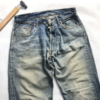Rare! Vintage Denime Japan Distressed Selvedge Jeans Tag: Denime Made in Japan size stated 31 manual measurement waist :- 15.5 inches Lenght (outseam ) :- 41 inches (Inseam) :- 31.5 inches Thigh :- 12 inches Front rise:- 10.5 inches Leg opening:- 8 inches condition: used distressed condition 7/10 (please refer photo) Colour :- washed indigo blue Additional: ●All Measurements were been measured flat on the floor. ●Please don't expect this item condition is 100% like new unless we have mention it. ●Please do not hesitate to contact us if you have any inquiries.Its our great pleasure to have conversation with customers. ●no return & refund if its do not meet your demand, please look carefully on details given. SHIPPING & HANDLING INFORMATION : # we shipped worldwide except ISRAEL. It's safe and you will be given tracking number for all item # we shipped items within 48 hours after receiving a cleared payment on Pay Pal (except for public holidays and weekends) and please do make sure your address is correct. # Please leave us your contact phone number, as the shipping company always need the phone number to help delivering. # we do offer combine shipping to save on postage cost. Do please contact us for combine postage after final purchases for combine shipping. Shipping cost: 1) DHL EXPRESS : $36 (ETA 3-5 DAYS TO ARRIVE) (PLEASE REQUEST IF THE ITEM NEEDED TO BE EXPEDITED - ADDITIONAL COST REQUIRED;, UNLESS, WE USED REGISTERED MAIL SERVICE ) 2) REGISTERED MAIL INTERNATIONAL SERVICE : $18 (ETA 14-21 DAYS TO ARRIVE) Thank you very much for your visit