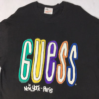 Vintage 90s Guess By George Marciano New York Paris Soft Thin Distressed Tshirt Tag: Guess By George Marciano Made in usa One size fits all, Refer manual measurements, armpit 21 inches, Shoulder width 20 inches, top of back collar to bottom 30.5 inches (laying flat) condition: good condition 8/10, got 1 hole & few pinholes already repaired with repaired cloth. (please refer photo) Additional: ●All Measurements were been measured flat on the floor. ●Please don't expect this item condition is 100% like new unless we have mention it. ●Please do not hesitate to contact us if you have any inquiries.Its our great pleasure to have conversation with customers. ●no return & refund if its do not meet your demand, please look carefully on details given. SHIPPING & HANDLING INFORMATION : # we shipped worldwide except ISRAEL. It's safe and you will be given tracking number for all item # we shipped items within 48 hours after receiving a cleared payment on Pay Pal (except for public holidays and weekends) and please do make sure your address is correct. # Please leave us your contact phone number, as the shipping company always need the phone number to help delivering. # we do offer combine shipping to save on postage cost. Do please contact us for combine postage after final purchases for combine shipping. Shipping cost: 1) DHL EXPRESS : $30 (ETA 3-5 DAYS TO ARRIVE) (PLEASE REQUEST IF THE ITEM NEEDED TO BE EXPEDITED - ADDITIONAL COST REQUIRED;, UNLESS, WE USED REGISTERED MAIL SERVICE ) 2) REGISTERED MAIL INTERNATIONAL SERVICE : $15 (ETA 14-21 DAYS TO ARRIVE) Thank you very much for your visit