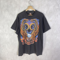 Vintage 90s Rock Eagle Snake Flame Live To Ride Tee Tag: Rock Eagle measurements: armpit 22 inches, top of back collar to bottom 30.5 inches Shoulder width 21 inches condition: condition 9/10, (please zoom extra photo given) main colour: black slight fade Additional: ●All Measurements were been measured flat on the floor. ●Please don't expect this item condition is 100% like new unless we have mention it. ●Please do not hesitate to contact us if you have any inquiries.Its our great pleasure to have conversation with customers. ●no return & refund if its do not meet your demand, please look carefully on details given. SHIPPING & HANDLING INFORMATION : # we shipped worldwide except ISRAEL. It's safe and you will be given tracking number for all item # we shipped items within 48 hours after receiving a cleared payment on Pay Pal (except for public holidays and weekends) and please do make sure your address is correct. # Please leave us your contact phone number, as the shipping company always need the phone number to help delivering. # we do offer combine shipping to save on postage cost. Do please contact us for combine postage after final purchases for combine shipping. Shipping cost: 1) DHL EXPRESS : $36 (ETA 3-5 DAYS TO ARRIVE) (PLEASE REQUEST IF THE ITEM NEEDED TO BE EXPEDITED - ADDITIONAL COST REQUIRED;, UNLESS, WE USED REGISTERED MAIL SERVICE ) 2) REGISTERED MAIL INTERNATIONAL SERVICE : $15 (ETA 14-21 DAYS TO ARRIVE) Thank you very much for your visit