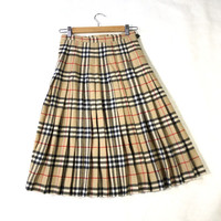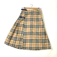 Vintage Burberry Nova Check Buckle Pleated Midi Wool Skirt Tag: - Burberry Made in england size fits w26-29 manual measurement waist :- 13.5 inches (adjustable) Lenght :- 26 inches Bottom Hem:- 39 inches condition: used condition 7/10, got defect (holes) (please refer photo) Main color: beige (novacheck) Additional: ●All Measurements were been measured flat on the floor. ●Please don't expect this item condition is 100% like new unless we have mention it. ●Please do not hesitate to contact us if you have any inquiries.Its our great pleasure to have conversation with customers. ●no return & refund if its do not meet your demand, please look carefully on details given. SHIPPING & HANDLING INFORMATION : # we shipped worldwide except ISRAEL. It's safe and you will be given tracking number for all item # we shipped items within 48 hours after receiving a cleared payment on Pay Pal (except for public holidays and weekends) and please do make sure your address is correct. # Please leave us your contact phone number, as the shipping company always need the phone number to help delivering. # we do offer combine shipping to save on postage cost. Do please contact us for combine postage after final purchases for combine shipping. Shipping cost: 1) DHL EXPRESS : $36 (ETA 3-5 DAYS TO ARRIVE) (PLEASE REQUEST IF THE ITEM NEEDED TO BE EXPEDITED - ADDITIONAL COST REQUIRED;, UNLESS, WE USED REGISTERED MAIL SERVICE ) 2) REGISTERED MAIL INTERNATIONAL SERVICE : $20 (ETA 14-21 DAYS TO ARRIVE) Thank you very much for your visit