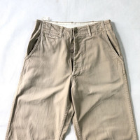 Vintage Evis Military Chino Khaki Distressed Pant Tag: Evis size fit to 29 manual measurement waist :- 14.5 inches Lenght (outseam ) :- 42 inches (Inseam ) :- 31 inches Thigh :- 12 inches Front rise:- 12.5 inches Leg opening:- 9 inches condition: condition 7/10, got ripped / distressed, 1 missing button already replaced. (please refer photo) Main colour: beige/ khaki Additional: ●All Measurements were been measured flat on the floor. ●Please don't expect this item condition is 100% like new unless we have mention it. ●Please do not hesitate to contact us if you have any inquiries.Its our great pleasure to have conversation with customers. ●no return & refund if its do not meet your demand, please look carefully on details given. SHIPPING & HANDLING INFORMATION : # we shipped worldwide except ISRAEL. It's safe and you will be given tracking number for all item # we shipped items within 48 hours after receiving a cleared payment on Pay Pal (except for public holidays and weekends) and please do make sure your address is correct. # Please leave us your contact phone number, as the shipping company always need the phone number to help delivering. # we do offer combine shipping to save on postage cost. Do please contact us for combine postage after final purchases for combine shipping. Shipping cost: 1) DHL EXPRESS : $36 (ETA 3-5 DAYS TO ARRIVE) (PLEASE REQUEST IF THE ITEM NEEDED TO BE EXPEDITED - ADDITIONAL COST REQUIRED;, UNLESS, WE USED REGISTERED MAIL SERVICE ) 2) REGISTERED MAIL INTERNATIONAL SERVICE : $20 (ETA 14-21 DAYS TO ARRIVE) Thank you very much for your visit