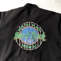 Vintage Hard Rock Cafe Hawaii Leather Sleeves Jacket Tag: missing size fits M-L measurements were armpit 23 nches, top of back collar to bottom 25.5 inches Shoulder to end of sleeves 22 inches Shoulder width 22 inches (laying flat) condition: used condition 6/10 , got defects hole infront , all button zipper good function (please refer photo) main colour: black Additional: ●All Measurements were been measured flat on the floor. ●Please don't expect this item condition is 100% like new unless we have mention it. ● Please pay close attention to measurements provided. ● Do not rely on tag size as pre-worn items may have been altered, stretched or shrunk & amp; vintage sizes do not directly translate the modern sizes. ● The best way to ensure a correct fit is to compare our measurements with the measurements of a similar item that you know fits you well. Please enlarge the photo for clearer image. SHIPPING & HANDLING INFORMATION : # we shipped worldwide except ISRAEL. It's safe and you will be given tracking number for all item # we shipped items within 48 hours after receiving a cleared payment on Pay Pal (except for public holidays and weekends) and please do make sure your address is correct. # Please leave us your contact phone number, as the shipping company always need the phone number to help delivering. # we do offer combine shipping to save on postage cost. Do please contact us for combine postage after final purchases for combine shipping. Shipping cost: 1) DHL EXPRESS : $36 (ETA 3-5 DAYS TO ARRIVE) (PLEASE REQUEST IF THE ITEM NEEDED TO BE EXPEDITED - ADDITIONAL COST REQUIRED;, UNLESS, WE USED REGISTERED MAIL SERVICE ) 2) REGISTERED MAIL INTERNATIONAL SERVICE : $20 (ETA 14-21 DAYS TO ARRIVE) Etc: - Do not worry about customs tax or fees. I usually declare all items as 'Gifts' & amp; declare value of items lower than original price. - All items are sold "AS IS" so please be sure to read the entire descriptions and look at all pictures. - Please do not hesitate to contact us if you have any inquiries.Its our great pleasure to have conversation with customers. - No return & refund if its do not meet your demand, please look carefully on details given. Thank you very much for your visit