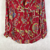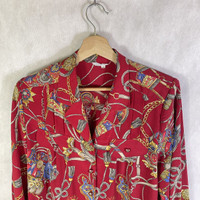 Vintage Japanese Baroque Novelty Chain Silk Shirt Tag: taimu Made in Japan Size state 13(women) measurements were armpit 23 inches, top of back collar to bottom 28 inches, Shoulder were 16 inches, Shoulder to end of sleeves 22.5 inches, condition: good condition 8/10, (please refer photo) main colour : red Additional: ●All Measurements were been measured flat on the floor. ●Please don't expect this item condition is 100% like new unless we have mention it. ●Please do not hesitate to contact us if you have any inquiries.Its our great pleasure to have conversation with customers. ●no return & refund if its do not meet your demand, please look carefully on details given. SHIPPING & HANDLING INFORMATION : # we shipped worldwide except ISRAEL. It's safe and you will be given tracking number for all item # we shipped items within 48 hours after receiving a cleared payment on Pay Pal (except for public holidays and weekends) and please do make sure your address is correct. # Please leave us your contact phone number, as the shipping company always need the phone number to help delivering. # we do offer combine shipping to save on postage cost. Do please contact us for combine postage after final purchases for combine shipping. Shipping cost: 1) DHL EXPRESS : $30 (ETA 3-5 DAYS TO ARRIVE) (PLEASE REQUEST IF THE ITEM NEEDED TO BE EXPEDITED - ADDITIONAL COST REQUIRED;, UNLESS, WE USED REGISTERED MAIL SERVICE ) 2) REGISTERED MAIL INTERNATIONAL SERVICE : $15 (ETA 14-21 DAYS TO ARRIVE) Thank you very much for your visit