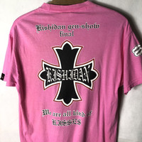 Vintage Kishidenne Wrerutogood Vivienne Westwood Dagger Tshirt Tag: Kishidenne Wrerutogood x Hanes size states Medium measurements were armpit 20.5 inches, top of back collar to bottom 27 inches shoulder width 20 inches main colour: pink slightly faded condition: used condition 7.5/10 (please refer photo) Additional: ●All Measurements were been measured flat on the floor. ●Please don't expect this item condition is 100% like new unless we have mention it. ●Please do not hesitate to contact us if you have any inquiries.Its our great pleasure to have conversation with customers. ●no return & refund if its do not meet your demand, please look carefully on details given. SHIPPING & HANDLING INFORMATION : # we shipped worldwide except ISRAEL. It's safe and you will be given tracking number for all item # we shipped items within 48 hours after receiving a cleared payment on Pay Pal (except for public holidays and weekends) and please do make sure your address is correct. # Please leave us your contact phone number, as the shipping company always need the phone number to help delivering. # we do offer combine shipping to save on postage cost. Do please contact us for combine postage after final purchases for combine shipping. Shipping cost: 1) DHL EXPRESS : $30 (ETA 3-5 DAYS TO ARRIVE) (PLEASE REQUEST IF THE ITEM NEEDED TO BE EXPEDITED - ADDITIONAL COST REQUIRED;, UNLESS, WE USED REGISTERED MAIL SERVICE ) 2) REGISTERED MAIL INTERNATIONAL SERVICE : $18 (ETA 14-21 DAYS TO ARRIVE) Thank you very much for your visit