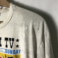 Vintage Mtv Japan Genki Tv Distressed Tshirt Tag: Genki Tv size fits Medium measurements were armpit 20 inches, top of back collar to bottom 26 inches shoulder width 20 inches main colour: faded bleach grey condition: used condition 7.5/10 (please refer photo) Additional: ●All Measurements were been measured flat on the floor. ●Please don't expect this item condition is 100% like new unless we have mention it. ●Please do not hesitate to contact us if you have any inquiries.Its our great pleasure to have conversation with customers. ●no return & refund if its do not meet your demand, please look carefully on details given. SHIPPING & HANDLING INFORMATION : # we shipped worldwide except ISRAEL. It's safe and you will be given tracking number for all item # we shipped items within 48 hours after receiving a cleared payment on Pay Pal (except for public holidays and weekends) and please do make sure your address is correct. # Please leave us your contact phone number, as the shipping company always need the phone number to help delivering. # we do offer combine shipping to save on postage cost. Do please contact us for combine postage after final purchases for combine shipping. Shipping cost: 1) DHL EXPRESS : $30 (ETA 3-5 DAYS TO ARRIVE) (PLEASE REQUEST IF THE ITEM NEEDED TO BE EXPEDITED - ADDITIONAL COST REQUIRED;, UNLESS, WE USED REGISTERED MAIL SERVICE ) 2) REGISTERED MAIL INTERNATIONAL SERVICE : $18 (ETA 14-21 DAYS TO ARRIVE) Thank you very much for your visit