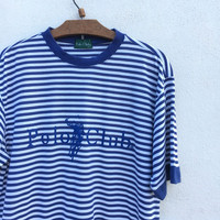Vintage Polo Club Stripes Spell Out tshirt Tag: Polo Club Tag says LL measurements were armpit 22.5 inches, top of back collar to bottom 30 inches Shoulder were 20.5 inches, main colour: blue & white condition: good condition 8/10 , no hole , ripped or stain , (please refer zoom photo) Additional: ●All Measurements were been measured flat on the floor. ●Please don't expect this item condition is 100% like new unless we have mention it. ●Please do not hesitate to contact us if you have any inquiries.Its our great pleasure to have conversation with customers. ●no return & refund if its do not meet your demand, please look carefully on details given. SHIPPING & HANDLING INFORMATION : # we shipped worldwide except ISRAEL. It's safe and you will be given tracking number for all item # we shipped items within 48 hours after receiving a cleared payment on Pay Pal (except for public holidays and weekends) and please do make sure your address is correct. # Please leave us your contact phone number, as the shipping company always need the phone number to help delivering. # we do offer combine shipping to save on postage cost. Do please contact us for combine postage after final purchases for combine shipping. Shipping cost: 1) DHL EXPRESS : $30 (ETA 3-5 DAYS TO ARRIVE) (PLEASE REQUEST IF THE ITEM NEEDED TO BE EXPEDITED - ADDITIONAL COST REQUIRED;, UNLESS, WE USED REGISTERED MAIL SERVICE ) 2) REGISTERED MAIL INTERNATIONAL SERVICE : $15 (ETA 14-21 DAYS TO ARRIVE) Thank you very much for your visit