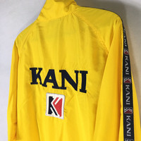 Rare!! Kani Big Logo Embroidery Windbreaker Jacket Tag: Kani size stated xlarge measurements were armpit 26 inches, top of back collar to bottom 31 inches, Sleeve length from collar 31 inches, Sleeve length from armpit 22 inches, main colour: yellow condition: good condition 8.5/10, no hole ripped or stain,(please refer photo) Additional: ●All Measurements were been measured flat on the floor. ●Please don't expect this item condition is 100% like new unless we have mention it. ●Please do not hesitate to contact us if you have any inquiries.Its our great pleasure to have conversation with customers. ●no return & refund if its do not meet your demand, please look carefully on details given. SHIPPING & HANDLING INFORMATION : # we shipped worldwide except ISRAEL. It's safe and you will be given tracking number for all item # we shipped items within 48 hours after receiving a cleared payment on Pay Pal (except for public holidays and weekends) and please do make sure your address is correct. # Please leave us your contact phone number, as the shipping company always need the phone number to help delivering. # we do offer combine shipping to save on postage cost. Do please contact us for combine postage after final purchases for combine shipping. Shipping cost: 1) DHL EXPRESS : $36 (ETA 3-5 DAYS TO ARRIVE) (PLEASE REQUEST IF THE ITEM NEEDED TO BE EXPEDITED - ADDITIONAL COST REQUIRED;, UNLESS, WE USED REGISTERED MAIL SERVICE ) Thank you very much for your visit