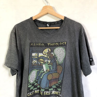 Rare! Mambo Theology 94’ Graphic Distressed Tshirt Tag: mambo Made in china size state XXL may fits to large-xlarge Manual measurements: armpit 23 inches, Shoulder width 20.5 inches top of back collar to bottom 28 inches, condition: used condition 7/10, got 1 hole, & bleach spot over the shirt , few paint mark near the graphic. please zoom extra photo given main colour: orange Additional: ●All Measurements were been measured flat on the floor. ●Please don't expect this item condition is 100% like new unless we have mention it. ●Please do not hesitate to contact us if you have any inquiries.Its our great pleasure to have conversation with customers. ●no return & refund if its do not meet your demand, please look carefully on details given. SHIPPING & HANDLING INFORMATION : # we shipped worldwide except ISRAEL. It's safe and you will be given tracking number for all item # we shipped items within 48 hours after receiving a cleared payment on Pay Pal (except for public holidays and weekends) and please do make sure your address is correct. # Please leave us your contact phone number, as the shipping company always need the phone number to help delivering. # we do offer combine shipping to save on postage cost. Do please contact us for combine postage after final purchases for combine shipping. Shipping cost: 1) DHL EXPRESS : $30 (ETA 3-5 DAYS TO ARRIVE) (PLEASE REQUEST IF THE ITEM NEEDED TO BE EXPEDITED - ADDITIONAL COST REQUIRED;, UNLESS, WE USED REGISTERED MAIL SERVICE ) 2) REGISTERED MAIL INTERNATIONAL SERVICE : $15 (ETA 14-21 DAYS TO ARRIVE) Thank you very much for your visit