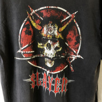Slayer Skull Metal Distressed Tshirt Tag: Gts Size fits Large measurements: armpit 21.5 inches, top of back collar to bottom 28.5 inches Shoulder width 20 inches condition: good used condition 7/10, (please zoom extra photo given) main colour: black faded Additional: ●All Measurements were been measured flat on the floor. ●Please don't expect this item condition is 100% like new unless we have mention it. ●Please do not hesitate to contact us if you have any inquiries.Its our great pleasure to have conversation with customers. ●no return & refund if its do not meet your demand, please look carefully on details given. SHIPPING & HANDLING INFORMATION : # we shipped worldwide except ISRAEL. It's safe and you will be given tracking number for all item # we shipped items within 48 hours after receiving a cleared payment on Pay Pal (except for public holidays and weekends) and please do make sure your address is correct. # Please leave us your contact phone number, as the shipping company always need the phone number to help delivering. # we do offer combine shipping to save on postage cost. Do please contact us for combine postage after final purchases for combine shipping. Shipping cost: 1) DHL EXPRESS : $36 (ETA 3-5 DAYS TO ARRIVE) (PLEASE REQUEST IF THE ITEM NEEDED TO BE EXPEDITED - ADDITIONAL COST REQUIRED;, UNLESS, WE USED REGISTERED MAIL SERVICE ) 2) REGISTERED MAIL INTERNATIONAL SERVICE : $15 (ETA 14-21 DAYS TO ARRIVE) Thank you very much for your visit