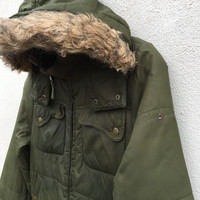 Vintage Tommy Hilfiger Warm Puffer Bomber Jacket Green ArmyHoodie with detachable fur Size: stated XS Measurement (inch): shoulder to shoulder= 15.5" Armpit to armpit= 18" Back collar to hem=23" Sleeves(from shoulder): = 25.5'' Material = nylon / lightweight Condition : Good Condition no holes, tears etc...9/10 P/S: this item may has been used or worn previously. Additional: ●All Measurements were been measured flat on the floor. ●Please don't expect this item condition is 100% like new unless we have mention it. ●Please do not hesitate to contact us if you have any inquiries.Its our great pleasure to have conversation with customers. ●no return & refund if its do not meet your demand, please look carefully on details given. SHIPPING & HANDLING INFORMATION : # we shipped worldwide except ISRAEL. It's safe and you will be given tracking number for all item # we shipped items within 48 hours after receiving a cleared payment on Pay Pal (except for public holidays and weekends) and please do make sure your address is correct. # Please leave us your contact phone number, as the shipping company always need the phone number to help delivering. # we do offer combine shipping to save on postage cost. Do please contact us for combine postage after final purchases for combine shipping. Shipping cost: 1) DHL EXPRESS : $30 (ETA 3-5 DAYS TO ARRIVE) (PLEASE REQUEST IF THE ITEM NEEDED TO BE EXPEDITED - ADDITIONAL COST REQUIRED;, UNLESS, WE USED REGISTERED MAIL SERVICE ) 2) REGISTERED MAIL INTERNATIONAL SERVICE : $20 (ETA 14-21 DAYS TO ARRIVE) Thank you very much for your visit