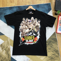 Vintage y2k Summer Slam Japan Tour Wrestling WWE WWF Raptees Pro Wrestling Tshirt Tag: Shoot size stated L Refer manual measurements, armpit 21 inches, Shoulder width 20 inches, top of back collar to bottom 29 inches (laying flat) condition: good condition 9/10 , (please refer photo) Additional: ●All Measurements were been measured flat on the floor. ●Please don't expect this item condition is 100% like new unless we have mention it. ●Please do not hesitate to contact us if you have any inquiries.Its our great pleasure to have conversation with customers. ●no return & refund if its do not meet your demand, please look carefully on details given. SHIPPING & HANDLING INFORMATION : # we shipped worldwide except ISRAEL. It's safe and you will be given tracking number for all item # we shipped items within 48 hours after receiving a cleared payment on Pay Pal (except for public holidays and weekends) and please do make sure your address is correct. # Please leave us your contact phone number, as the shipping company always need the phone number to help delivering. # we do offer combine shipping to save on postage cost. Do please contact us for combine postage after final purchases for combine shipping. Shipping cost: 1) DHL EXPRESS : $30 (ETA 3-5 DAYS TO ARRIVE) (PLEASE REQUEST IF THE ITEM NEEDED TO BE EXPEDITED - ADDITIONAL COST REQUIRED;, UNLESS, WE USED REGISTERED MAIL SERVICE ) 2) REGISTERED MAIL INTERNATIONAL SERVICE : $15 (ETA 14-21 DAYS TO ARRIVE) Thank you very much for your visit