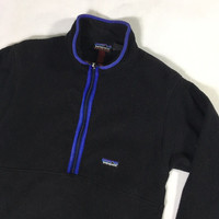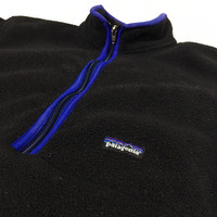 Vintage Patagonia Synchilla Fleece Quarter Zipper Pullover Outdoor Medium Tag: Patagonia Synchilla Tag size state M measurements: armpit 19 inches, Shoulder width 18 inches, top of back collar to bottom 27.5 inches, Shoulder to end sleeve were 25 inches condition: good used condition no hole ,no ripped or heavy stain , please zoom extra photo given main colour: black