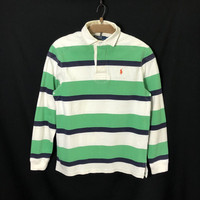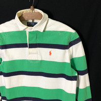 Vintage Polo Ralph Lauren Rugby Long Sleeve Polo Shirt Tag: Polo Ralph Lauren Made in Sri Lanka size state S Manual measurements: armpit 20 inches, Shoulder width 18 inches top of back collar to bottom 27.5 inches, shoulder to sleeve were 25 inches. condition: good condition 8/10, no hole,rip or stain, just few yellowish near collar please zoom extra photo given main colour: green / white Additional: ●All Measurements were been measured flat on the floor. ●Please don't expect this item condition is 100% like new unless we have mention it. ●Please do not hesitate to contact us if you have any inquiries.Its our great pleasure to have conversation with customers. ●no return & refund if its do not meet your demand, please look carefully on details given. SHIPPING & HANDLING INFORMATION : # we shipped worldwide except ISRAEL. It's safe and you will be given tracking number for all item # we shipped items within 48 hours after receiving a cleared payment on Pay Pal (except for public holidays and weekends) and please do make sure your address is correct. # Please leave us your contact phone number, as the shipping company always need the phone number to help delivering. # we do offer combine shipping to save on postage cost. Do please contact us for combine postage after final purchases for combine shipping. Shipping cost: 1) DHL EXPRESS : $30 (ETA 3-5 DAYS TO ARRIVE) (PLEASE REQUEST IF THE ITEM NEEDED TO BE EXPEDITED - ADDITIONAL COST REQUIRED;, UNLESS, WE USED REGISTERED MAIL SERVICE ) 2) REGISTERED MAIL INTERNATIONAL SERVICE : $15 (ETA 14-21 DAYS TO ARRIVE) Thank you very much for your visit
