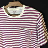 Stussy Gear Retro Stripes Pocket Surf Grunge Tees Tag: Stussy measurements were armpit 19.5 inches, top of back collar to bottom 27.5 inches, Shoulder width 17.5 inches condition: good condition 8/10 (please refer photo) main colour : white/purple Additional: ●All Measurements were been measured flat on the floor. ●Please don't expect this item condition is 100% like new unless we have mention it. ●Please do not hesitate to contact us if you have any inquiries.Its our great pleasure to have conversation with customers. ●no return & refund if its do not meet your demand, please look carefully on details given. SHIPPING & HANDLING INFORMATION : # we shipped worldwide except ISRAEL. It's safe and you will be given tracking number for all item # we shipped items within 48 hours after receiving a cleared payment on Pay Pal (except for public holidays and weekends) and please do make sure your address is correct. # Please leave us your contact phone number, as the shipping company always need the phone number to help delivering. # we do offer combine shipping to save on postage cost. Do please contact us for combine postage after final purchases for combine shipping. Shipping cost: 1) DHL EXPRESS : $36 (ETA 3-5 DAYS TO ARRIVE) (PLEASE REQUEST IF THE ITEM NEEDED TO BE EXPEDITED - ADDITIONAL COST REQUIRED;, UNLESS, WE USED REGISTERED MAIL SERVICE ) 2) REGISTERED MAIL INTERNATIONAL SERVICE : $15 (ETA 14-21 DAYS TO ARRIVE) Thank you very much for your visit
