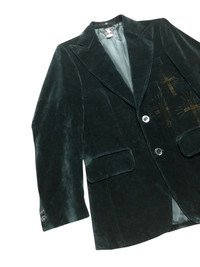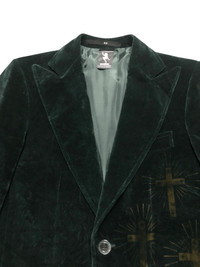 N.HoolyWood Green Velvet Blazer Design Cross Printed
