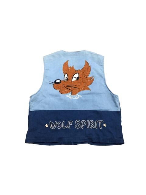 Cartoon Network - Japanese Brand Vintage Wolf Spirit Embroidered Print Vest