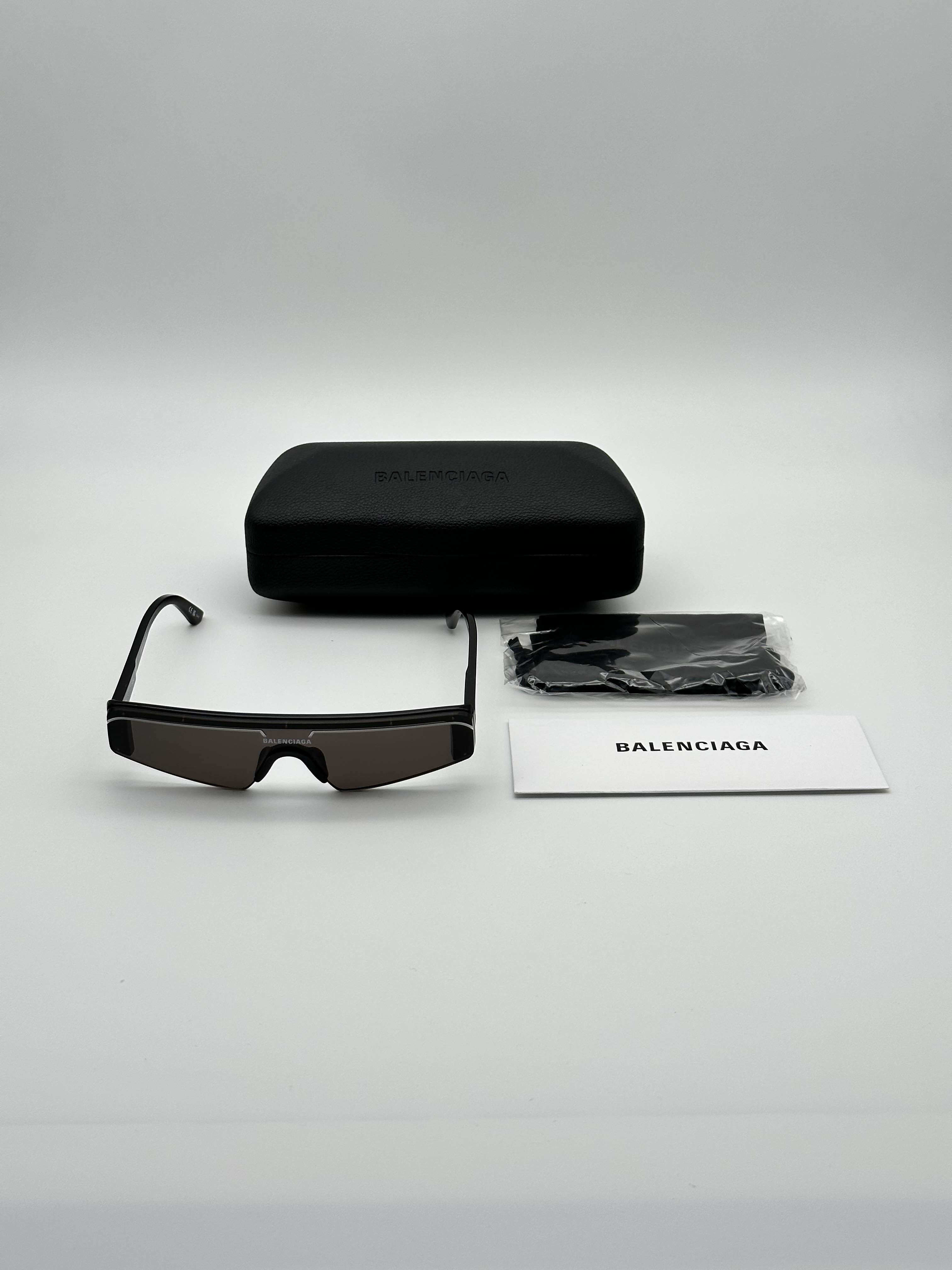 100% AUTHENTIC BALENCIAGA SUNGLASSES BRAND NEW Model: BB0003S - 001 Black Rectangular/Square Color Code 001 Frame Material Plastic Lens Material Nylon Frame Color Black Lens Color Grey Bridge 1.0 Rods Length 140.0 Lens Length 99 Glasses Shape Rectangular - Square Lens Base M02 Made in Italy Comes with original packaging and all accessories Our boutique guarantees best prices and quality