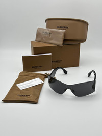 AUTHENTIC BURBERRY SUNGLASSES DETAIL Name: BE3137 BELLA UPC: 8056597735148 Shape: Rectangle Frame material: Metal Frame color: Grey Lens material: Polyamide Bio Lens Technology: Solid Color Lens color: Dark Grey Looks best on these faces shape: Oval, Round Fit: Regular fit A medium lens front designed for those with an average-sized head. Bridge choice & nosepads: Adjustable nosepads Adjustable nosepads can be widened or narrowed to fit your unique nose shape Made in Italy Comes with original packaging and all accessories
