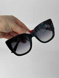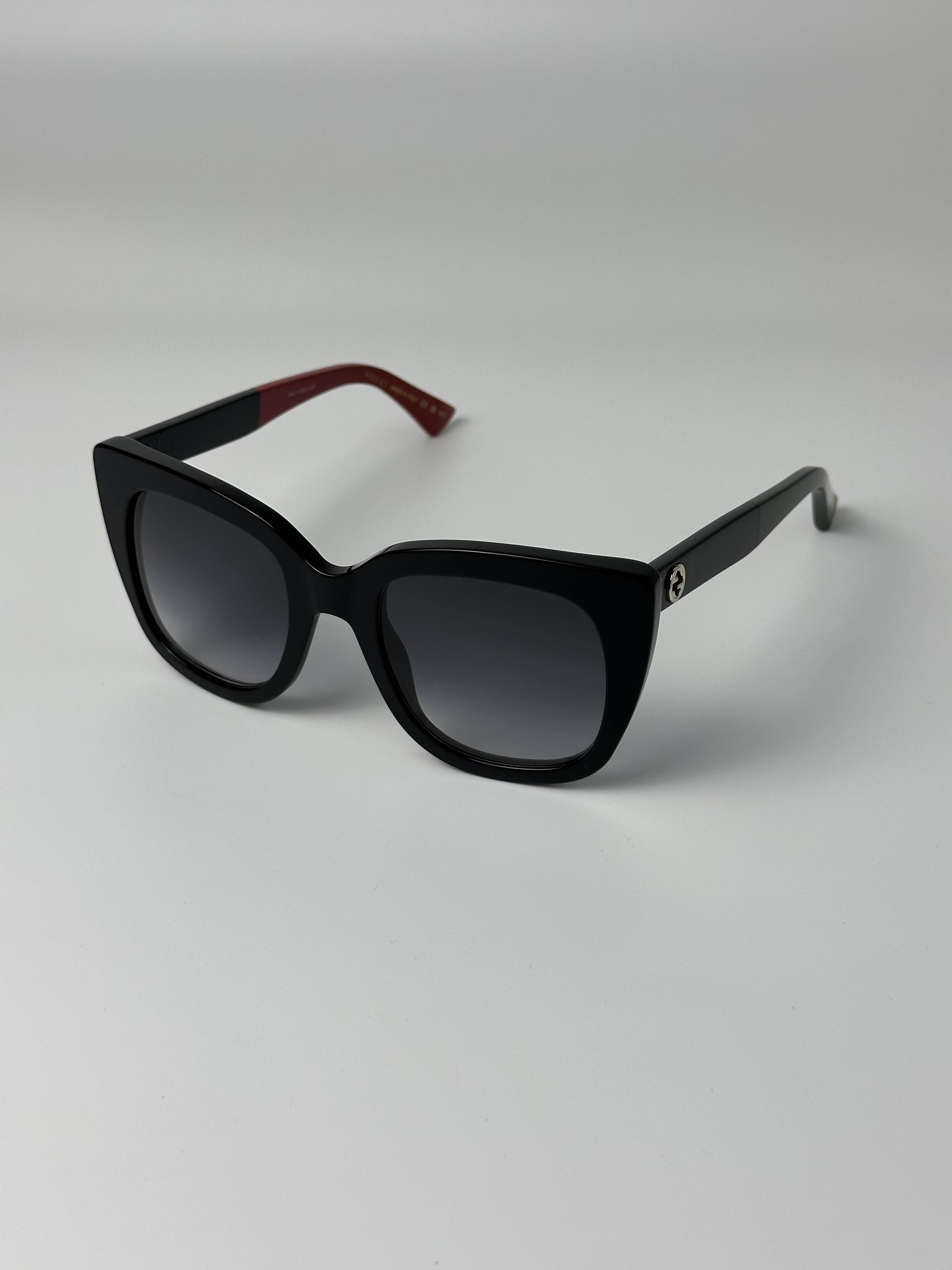 AUTHENTIC GUCCI SUNGLASSES DETAILS GUCCI GG0163SN Frame Color: Black 003 Front Color: Black Temple Color: BLACK Lens Color: GREY Polarized Lens: No Lens Material: NYLON Prescription Capable: Yes Frame Shape: Cat Eye Gender: Women's Lens Width: 51 Bridge Width: 22 Arm Length: 140 Made in Italy Comes with original packaging and all accessories
