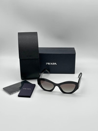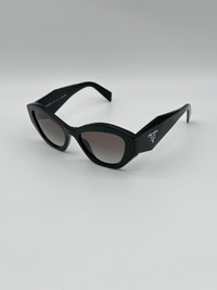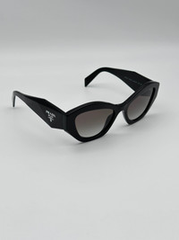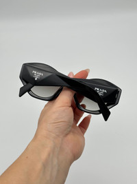100% AUTHENTIC PRADA SUNGLASSES DETAILS PRADA PR 07YS Frame Color: Black Lens Color: Grey Gradient Polarized Lens: No Lens Material: plastic Prescription Capable: Yes Frame Shape: Irregular Frame Material: Plastic Gender: Women's Lens Width: 53 Bridge Width: 19 Arm Length: 145 Lens Height: 40 Made in Italy Comes with original packaging and all accessories Our boutique guarantees best prices and quality