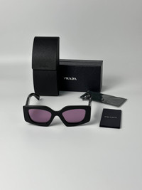 AUTHENTIC PRADA SUNGLASSES DETAILS PRADA PR 15YS Frame Color: Black Lens Color: Dark Violet Mirror Silver Int Polarized Lens: No Lens Material: plastic Prescription Capable: Yes Frame Shape: Irregular Frame Material: Plastic Gender: Women's Lens Width: 51 Bridge Width: 21 Arm Length: 140 Lens Height: 37 Made in Italy Comes with original packaging and all accessories