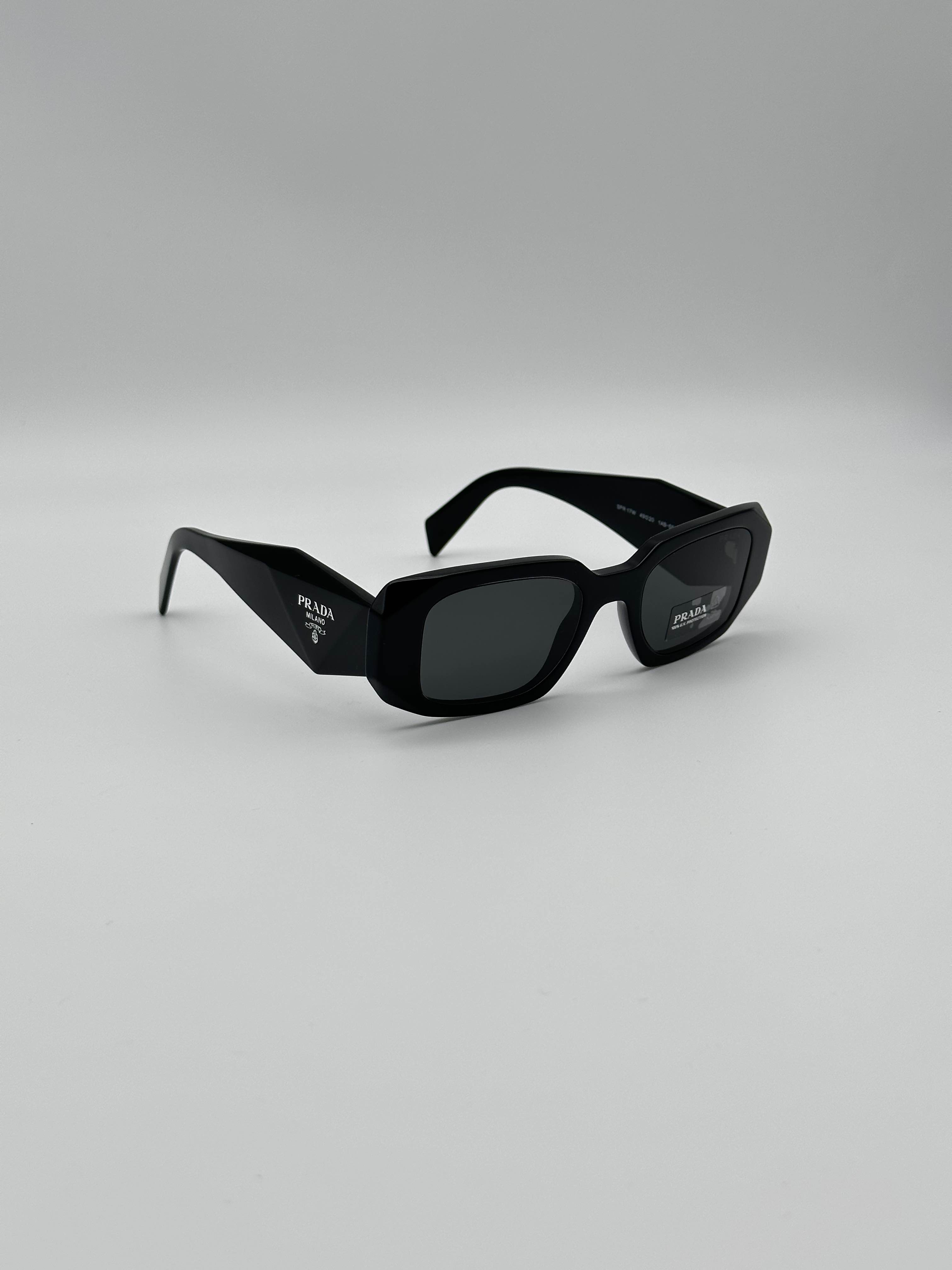 100% AUTHENTIC PRADA SUNGLASSES PRADA PR 17WS DETAIL Name: PR 17WS UPC: 8056597418478 Shape: Rectangle Frame material: Acetate Frame color: Black Lens material: Polyamide Lens Technology: Solid Color Lens color: Dark Grey Lens height: 35.5 Size: Looks best on these face shapes: Oval, Round DESCRIPTION Protagonist of SS21 digital fashion show, distinctive narrow shape and triangular facets highlight the brand identity of this disinctive Prada catwalk look. Comes with original packaging and all accessories Our boutique guarantees best prices and quality
