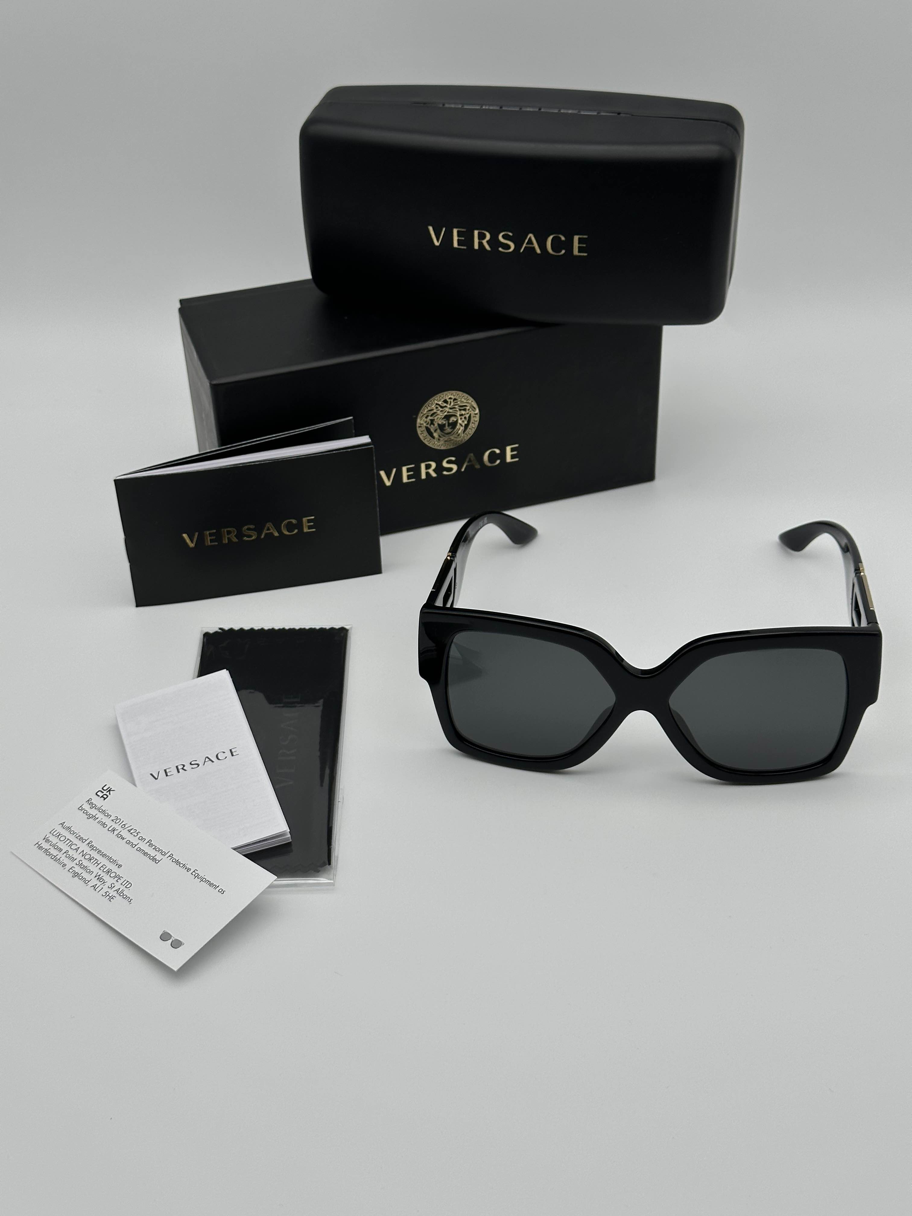 100% AUTHENTIC VERSACE SUNGLASSES Model : 0VE4402 Shape : Rectangle Gender : Female Material : Acetate Color Details Color Code : GB1/87 Color Description : Black Frame Color : Black Lens Color : Dark Grey Size Details Size : 59-16-140 Made in Italy Comes with original packaging and all accessories Our boutique guarantees best prices and quality
