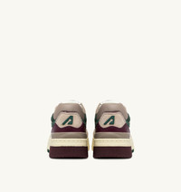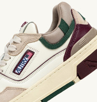 A reinterpretation of the classic Medalist with added volume, the CLC stands for Counter-Lock-Cord, referring to the ankle reinforcement typical of basketball shoes. This women's sneakers is crafted from ivory white leather with burgundy details and beige and dark green suede inserts that create a nice contrast. Note the padded mesh collar that offers added stability, and the high rubber sole in different colors with a textured tread that adds edge and urban appeal to the style—destined to become the finishing touch to your everyday wardrobe. Logo details on the side and heel further personalize the look, adding an authentic touch to a modern everyday aesthetic. SPECIFICATIONS: - Leather suede and mesh upper. - Micro-perforated toe. - Flat laces in cotton. - Embroidery label detailing seamed at the tongue. - Padded collar. - Mesh and cotton terry lining. - 2 cm-high raised sockliner in leather. - Rubber sole. - Height of sole: 3.4-4 cm. - Personalized shoe bag in fabric. COMPOSITIONS: Upper: 55% leather, 30% suede, 15% mesh Lining: 50% mesh, 50% cotton terry Sole: 100% rubber