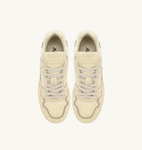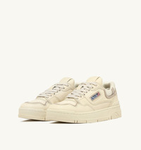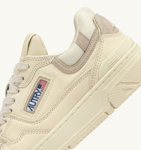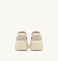 CLC sneakers come as a reinterpretation of the classic Medalist with added volume; CLC stands for Counter-Lock-Cord and refers to the ankle reinforcement typical of basketball shoes. This monochromatic women's design is crafted from soft lambskin and ivory white nylon with color matching suede details, characterized by a bold and welcoming shape with a padded mesh ankle collar and internal support that provides additional heel support. The distinctive feature is the color matching high rubber sole with relief tread emphasizing the street energy of the design. SPECIFICATIONS: - Lambskin and nylon upper. - Micro-perforated toe. - Flat cotton laces. - Embroidery label detailing seamed at the tongue. - Padded collar. - Mesh, terry and nylon lining. - 2-cm raised sockliner in leather. - Sole in rubber with contrast tread. - Height of sole: 3.4-4 cm. - Personalize shoe bag in fabric. COMPOSITION: Upper: 30% nappa leather, 40% nylon; 15% mesh; 15% suede Lining: 50% mesh, 50% cotton terry Sole: 100% rubber