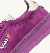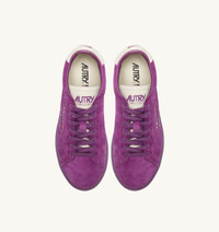 Simple and versatile, Dallas Low men's sneakers are the must-have piece for those who love a sporty and metropolitan look. The low-top cut, durable and functional, finished with a clear sole in the same shade of purple. Upper in soft, natural-looking suede enriched by the white leather heel tab with embossed Autry logo color purple, which gives the whole shoe an authentic look. The Autry logo at side adds the final touch. SPECIFICATIONS: - Suede upper. - Suede toe. - Flat cotton laces. - Etched logo at tongue. - Padded collar. - Leather and cotton terry lining. - 2-cm raised sockliner in leather. - Rubber sole. - Height of sole: 2.5-3.5 cm. - Personalize shoe bag in fabric. COMPOSITIONS: Upper: 85% suede, 15% leather Lining: 40% leather, 50% cotton terry, 10% nylon Sole: 100% transparent rubber