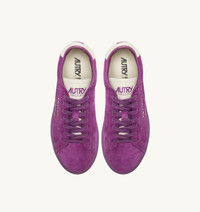 Simple and versatile, Dallas Low women's sneakers are the must-have piece for those who love a sporty and metropolitan look. The low-top cut, durable and functional, finished with a clear sole in the same shade of purple. Upper in soft, natural-looking suede enriched by the white leather heel tab with embossed Autry logo color purple, which gives the whole shoe an authentic look. The Autry logo at side adds the final touch. SPECIFICATIONS: - Suede upper. - Suede toe. - Flat cotton laces. - Etched logo at tongue. - Padded collar. - Leather and cotton terry lining. - 2-cm raised sockliner in leather. - Rubber sole. - Height of sole: 2.5-3.5 cm. - Personalize shoe bag in fabric. COMPOSITIONS: Upper: 85% suede, 15% leather Lining: 40% leather, 50% cotton terry, 10% nylon Sole: 100% transparent rubber
