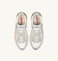 Hyperway: the Autry sneakers inspired by the future. Running style meets urban inspiration with the new Action Cush technology for maximum comfort. The upper stands out for its combination of three materials. The lightweight, breathable mesh ensures comfort, while the goatskin—known for its softness and durability—adds durability and a touch of sophistication. The addition of laminated leather brings a sophisticated, modern touch to the design. The sole features 'Action Cush' technology, delivering enhanced cushioning and optimal comfort for a uniquely smooth and enjoyable movement experience. The TPR stabilizer, strategically placed, provides support and stability. The nylon tongue adds a functional yet refined touch, while the embossed leather back counter, the jacquard fabric label at the tongue, and the side logo bring an extra layer of authenticity. SPECIFICATIONS: - Goatskin, laminated leather and mesh upper. - Mesh toe. - Flat cotton laces. - Jacquard logo label. - Padded collar in mesh. - Cotton terry lining. - 1.5 mm high mesh-lined sockliner. - PI sole. - Height of sole: 3.5 cm. - Personalized dust bag in nylon. COMPOSITIONS: Upper: 80%, 20% fabric (100% polyester) Lining: 50% cotton terry, 10% nylon, 5% leather, 35% mesh Sole: 40% Phylon, 20% TPU, 40% rubber
