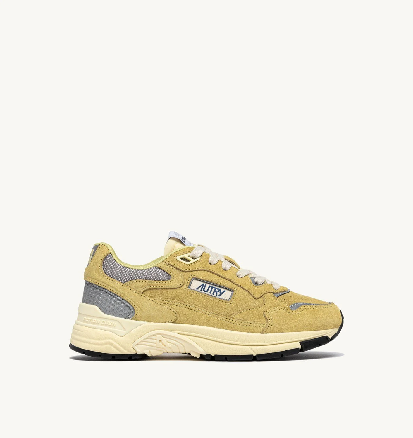 Hyperway: the Autry sneaker inspired by the future. Running style meets urban inspiration with the new Action Cush technology for maximum comfort. The upper stands out for its combination of two materials. Mesh, lightweight and breathable, ensures comfort while the suede, completes the design with a sophisticated finish, evoking a vintage aesthetic. The sole features 'Action Cush' technology, delivering enhanced cushioning and optimal comfort for a uniquely smooth and enjoyable movement experience. The TPR stabilizer, strategically placed, provides support and stability. This style stands out for its refined nylon tongue offering a sleek, functional design, along with the embossed leather back counter and jacquard fabric tag and logo on the side, which add an extra touch of authenticity. SPECIFICATIONS: - Mesh and suede upper. - Suede toe. - Flat cotton laces. - Logo label detailing seamed at the tongue. - Padded ankle collar in mesh. - Cotton terry lining. - 1.5 mm high raised mesh fabric-lined sockliner. - PI sole. - Height of sole: 3.5 cm. - Personalized shoe bag in fabric. COMPOSITION: Upper: 70% suede, 5% mesh, 10% nylon, 15% synthetic material (100% PU) Lining: 50% cotton terry, 10% nylon, 10% leather, 30% mesh Sole: 40% phylon, 40% rubber, 20% TPU