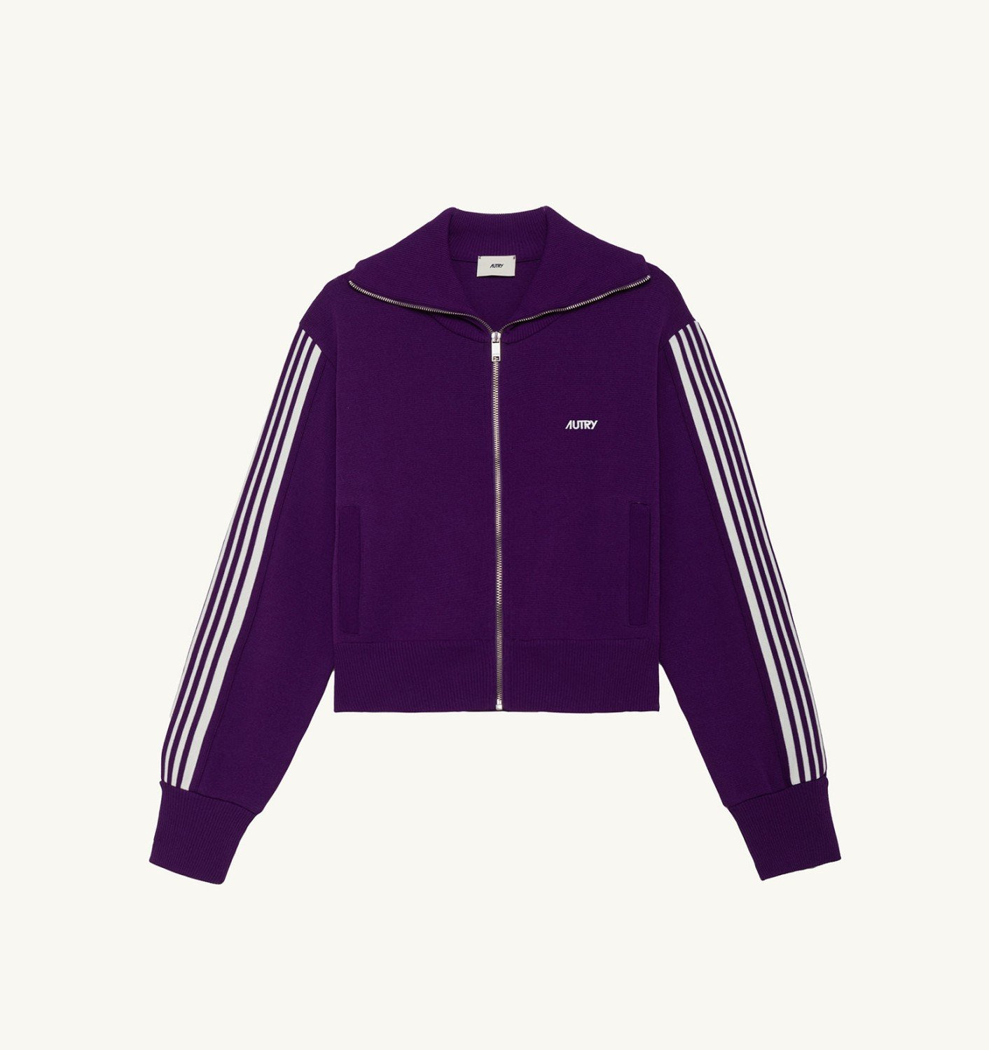 DETAILS: - 64% viscose 36% polyammide - Pockets on front - Metal zip - Side striped band in contrast - Autry logo at chest - Regular fit The model is 1.77 m tall and wears size M.
