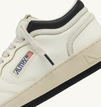 Med-Way is Autry’s new model—an evolution of the classic Medalist, distinguished by its slightly higher collar. Crafted from soft ivory white leather with branded details on the side and tongue, this men’s sneakers captures the brand’s ‘80s tennis spirit and reinterprets it with streetwear proportions for a fresh take on style and comfort. Updated with modern proportions and premium materials, it delivers maximum comfort thanks to the perforated toe designed for enhanced breathability, and the rubber sole that supports every step. Standout features include the two-tone sole with a tread matching the padded collar and refined crackle-effect leather inserts at the back, for a cutting-edge look. SPECIFICATIONS: - Upper in leather. - Micro-perforated toe. - Flat laces in cotton. - Logo label detailing seamed at the tongue. - Padded collar. - Leather and cotton terry lining. - 2 cm-high raised sockliner in leather. - Rubber sole. - Height of sole: 2.5-3.5 cm. - Personalized shoe bag in fabric. SPECIFICATIONS: Upper: 100% leather Lining: 40% leather, 50% cotton terry, 10% nylon Sole: 100% rubber