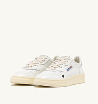 Love starts with details. Medalist in a special edition: a celebration of romance and style, straight from the heart. Crafted from white leather with black embroidered details, including the logo on the heel tab and a heart on the outer side. This design blends 1980s tennis-inspired aesthetics with premium materials and dynamic shapes, making it versatile for various looks while ensuring exceptional comfort. These sneakers stand out for their authentic style, enhanced by a jacquard logo on the side and a branded embroidered label on the tongue, adding an extra touch of personality. The micro-perforated finish on the toe ensures excellent breathability, while the slightly darker rubber sole provides comfort and keeps pace with your every step. SPECIFICATIONS: - Upper in leather. - Micro-perforated toe. - Flat cotton laces. - Embroidery label detailing seamed at the tongue. - Padded ankle collar. - Leather and cotton terry lining. - 2cm-high raised sockliner in leather. - Rubber sole. - Height of sole: 2.5-3.5 cm. - Personalize shoe bag in fabric. COMPOSITION: Tomaia: 100% leather Lining: 40% leather, 50% cotton terry, 10% nylon Sole: 100% rubber