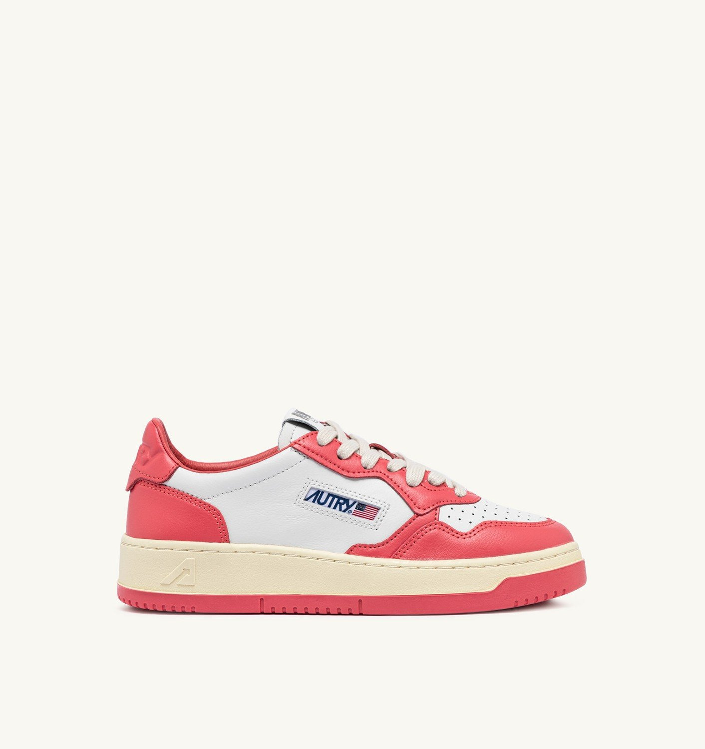 A classic Medalist sneakers featuring bold color combinations that exude strong personality. This women's style validates Autry's original spirit inspired by 80s tennis style, updated with streetwear proportions for a new experience of style and comfort. Made of soft leather with an authentic look, this design comes in a bold color block pattern in white and pink, with a natural rubber sole and pink tread marking the rhythm of your steps. SPECIFICATIONS: - Color-block leather upper. - Micro-perforated toe. - Flat cotton laces. - Embroidery label detailing seamed at the tongue. - Padded collar. - Leather and cotton cotton terry lining. - 2-cm raised sockliner in leather. - Sole in rubber with contrast tread. - Height of sole: 2.5-3.5 cm. - Personalize shoe bag in fabric. COMPOSITION: Upper: 100% leather Lining: 40% leather; 50% terry; 10% nylon Sole: 100% rubber