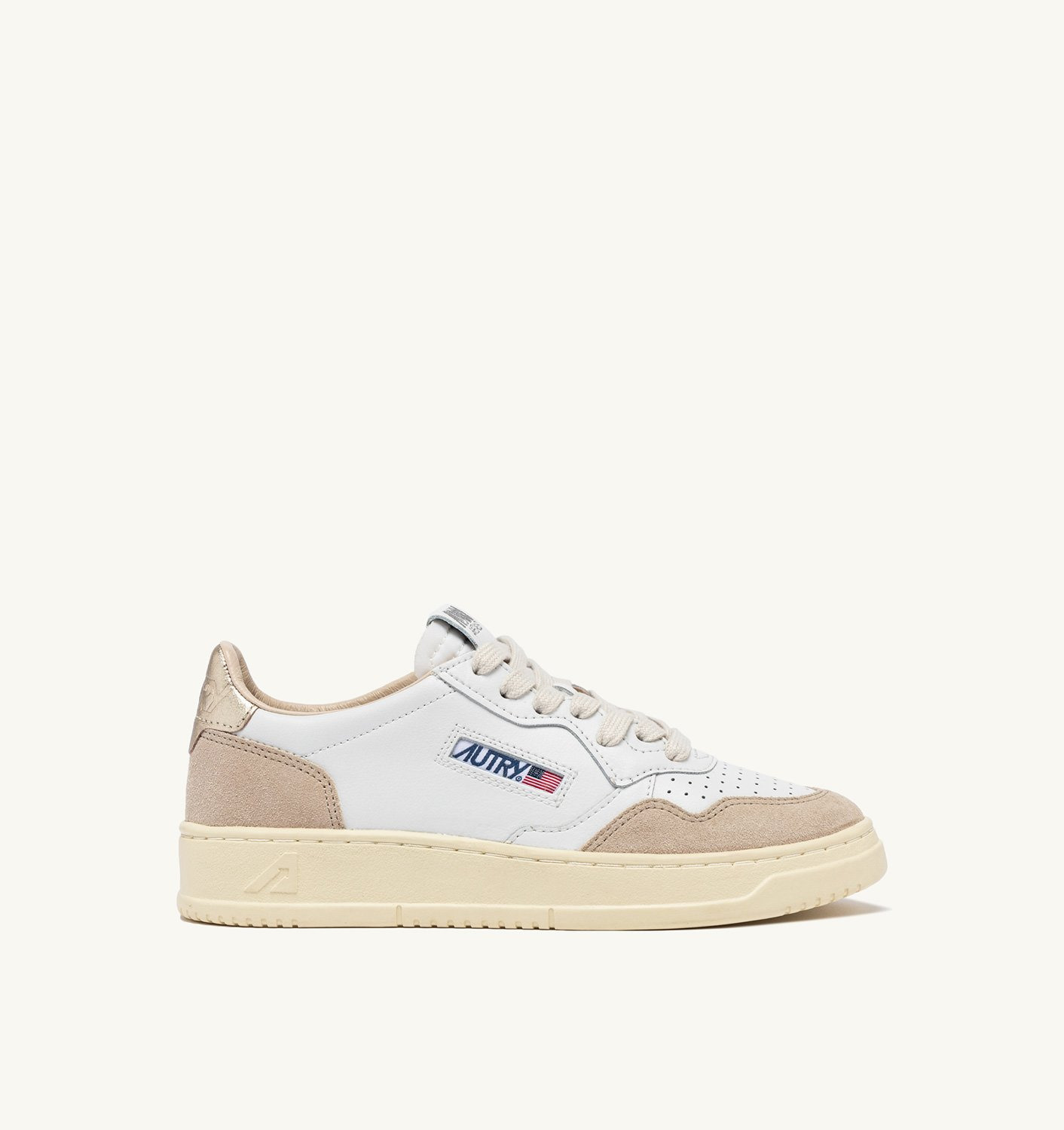 MEDALIST LOW SNEAKERS IN WHITE AND GOLD LEATHER