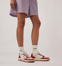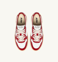 Autry Medalist reimagines 1980s tennis style, blending heritage vibes with a clean, modern aesthetic. Characterized by an essential design, it is the perfect everyday sneaker thanks to its timeless and versatile mood, ensuring everyday comfort while combining classic style and functionality. The “Game Set Match!” are a must-have accessory in the wardrobe of true tennis lovers. This women’s sneaker features a white leather upper and is finished with red inserts that add a bold, graphic touch. The rubber sole instantly evokes the spirit of tennis, featuring a personalized "Game Set Match!" lettering in a bold graffiti style. Autry's typical side logo insert adds the finishing touch to the design. SPECIFICATIONS: - Upper in leather. - Micro-perforated toe. - Flat cotton laces. - Embroidery label detailing seamed at the tongue. - Padded ankle collar. - Leather and cotton terry lining. - 2 cm-high raised sockliner in leather. - Sole in rubber. - Height of sole: 2.5-3.5 cm. - Personalized shoe bag in fabric. COMPOSITION: Upper: 100% leather Lining: 40% leather, 50% cotton terry, 10% nylon Sole: 100% rubber