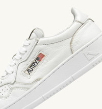 Discover the Medalist Sneaker in goatskin leather, treated and stone-washed for a unique look. The worn-in effect is created by natural creases, irregularities, and subtle variations in the white color, all achieved through a special production process that gives each pair a one-of-a-kind finish. SPECIFICATIONS: - Goatskin. - Washed with water and stones for 20 minutes. - White upper with visible stitching. - Perforated toe for breathability. - Flat cotton laces. - Goatskin tongue with tone-on-tone stitched label. - Padded ankle collar. - Tone-on-tone heel tab with embossed logo. - Lined in leather and cotton terry. - 2-cm raised insole in leather with logo. - Signature rubber sole in the same color as the upper. - Sole height: 2.5 - 3.5 cm. - Shoe bag included. SPECIFICATIONS: Upper: 100% goatskin Lining: 40% leather, 50% cotton terry, 10% nylon Sole: 100% rubber