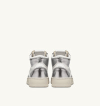 Bold colorways and signature details lend this Medalist high-top sneakers a fresh spin. An essential, ultimately cool accessory for everyday wear, this women's sneakers features a bold colour block construction in white and silver laminated leather. The padded collar and natural rubber sole set the style apart, and offer unbeatable comfort. SPECIFICATIONS: - Bicolor leather upper - Perforated toe - Flat cotton laces - Label sewn on tongue - Padded ankle collar - Lined in leather and cotton terry - 2 cm leather insole - Rubber sole with contrasting tread - Height of sole: 2,5-3,5 cm. - Fabric dust bag. COMPOSITION: Upper Material: 100% cow leather Lining: 40% pigskin; 50% towel; 10% nylon Outsole: 100% rubber
