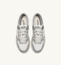 MEDALIST MID BICOLOR SNEAKERS IN WHITE AND SILVER LEATHER